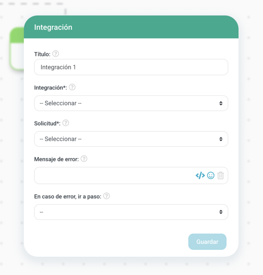 Lo primero que debes hacer es insertar un nodo de tipo “Integración” dentro del flujo del bot. Este nodo es el que permite llamar a una de las integraciones REST que ya configuraste (GET o POST).