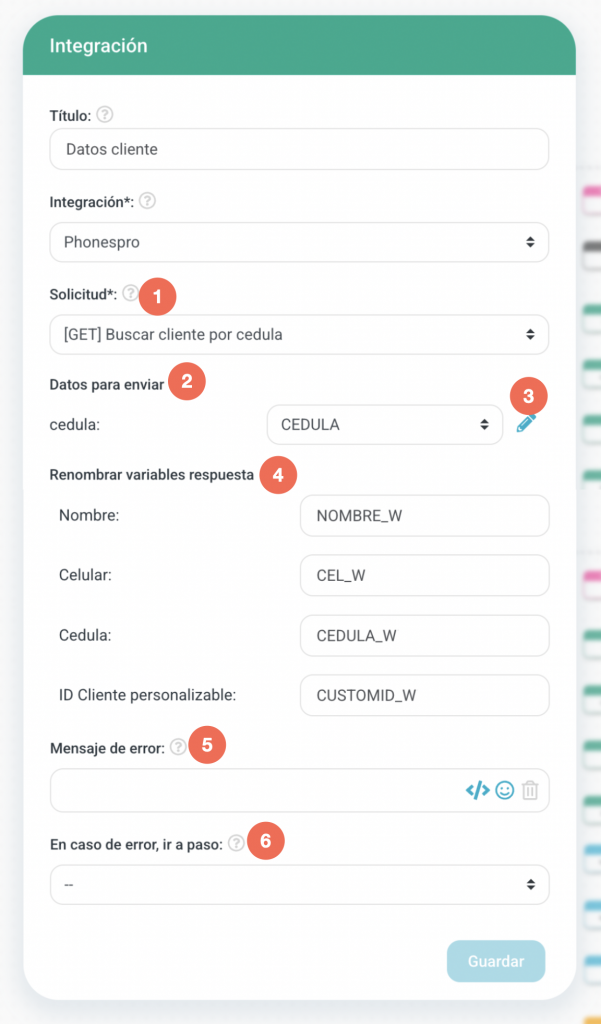 Si hay un error en la llamada (por ejemplo, si no hay datos para esa cédula), aquí defines a qué nodo del flujo debe continuar el bot.
