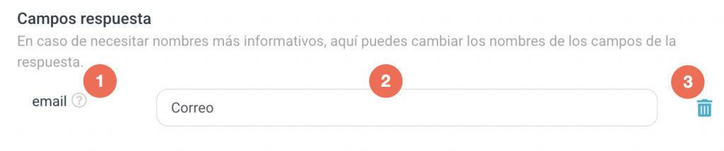 Aquí puedes renombrar los campos que devuelve la API en la respuesta.
